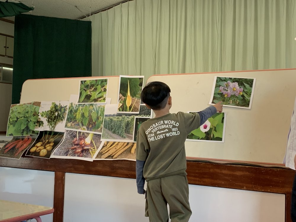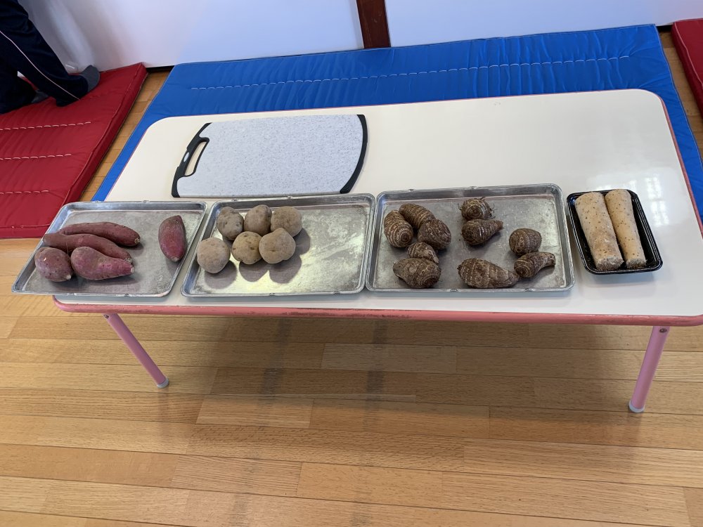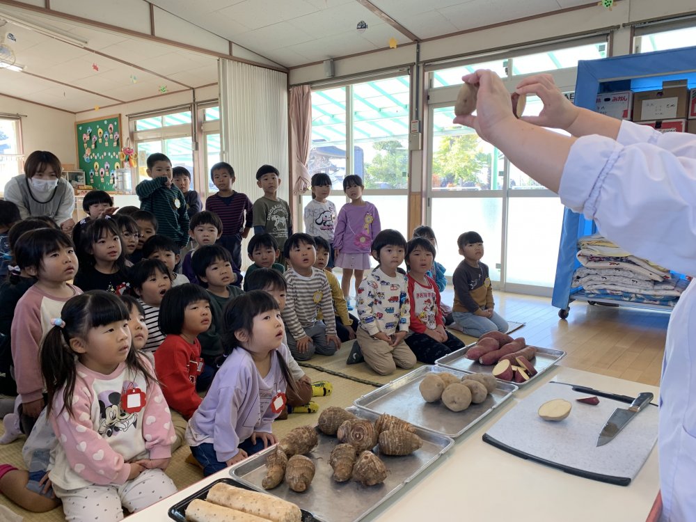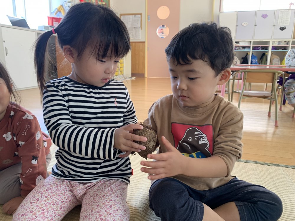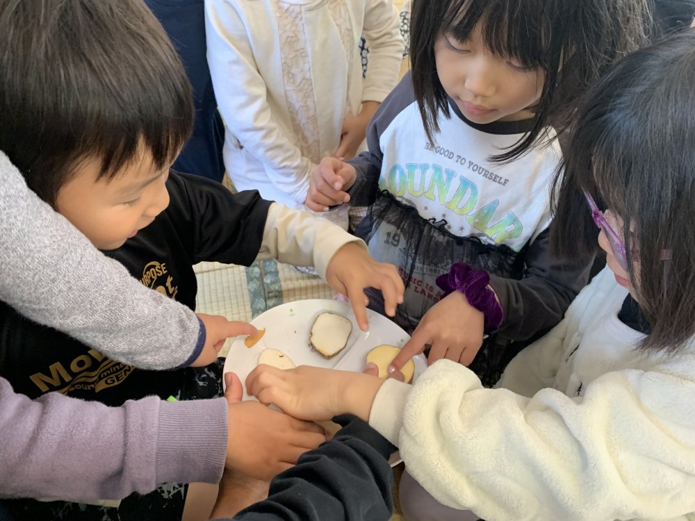 さつまいもを鼻に近づけて「いいにおいがするよ」