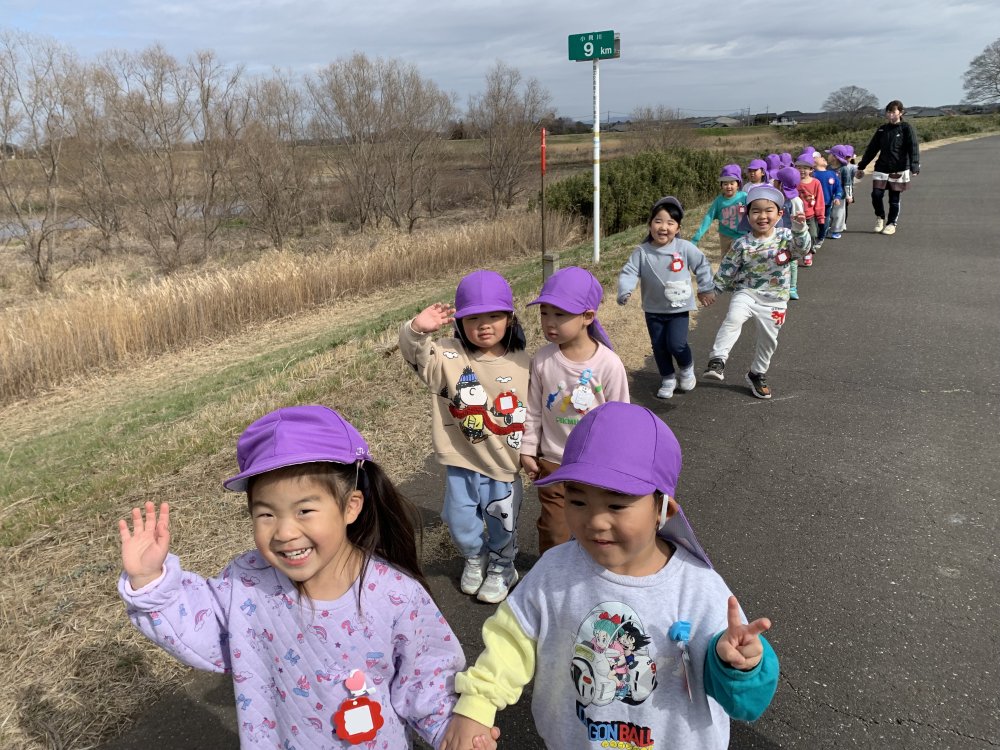 一年間でついた体力を使って片道約2.5キロの道のりを歩きました。