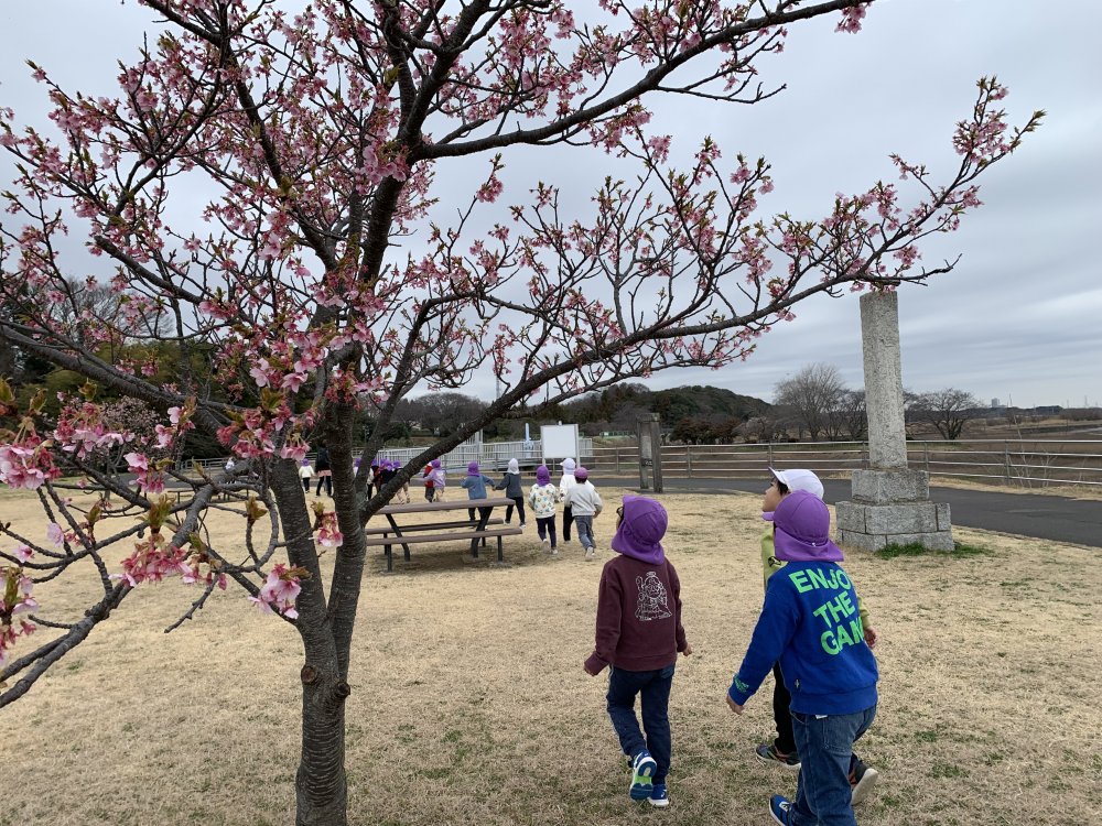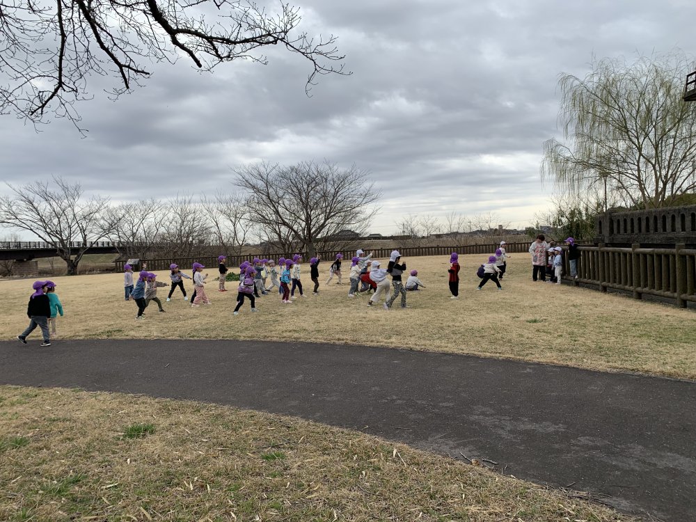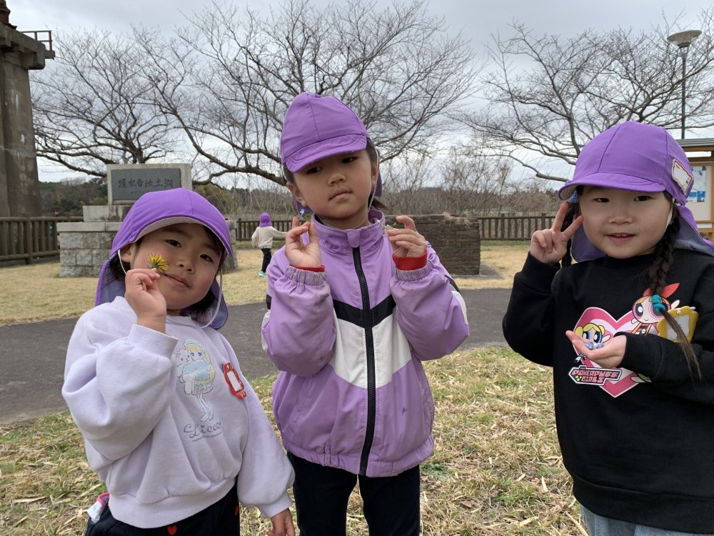 春の草花を手にしたり、広い空間では大人数参加の「だるまさんころんだ」を楽しんでしました!