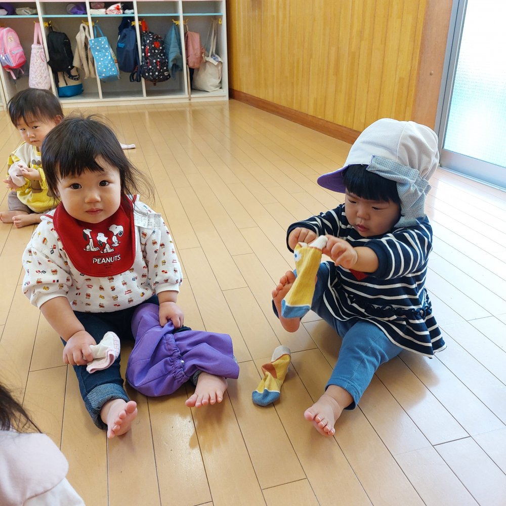 ピカピカの上履きを「見てみて!」とお友だち同士で見せ合ったり、