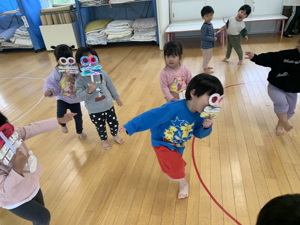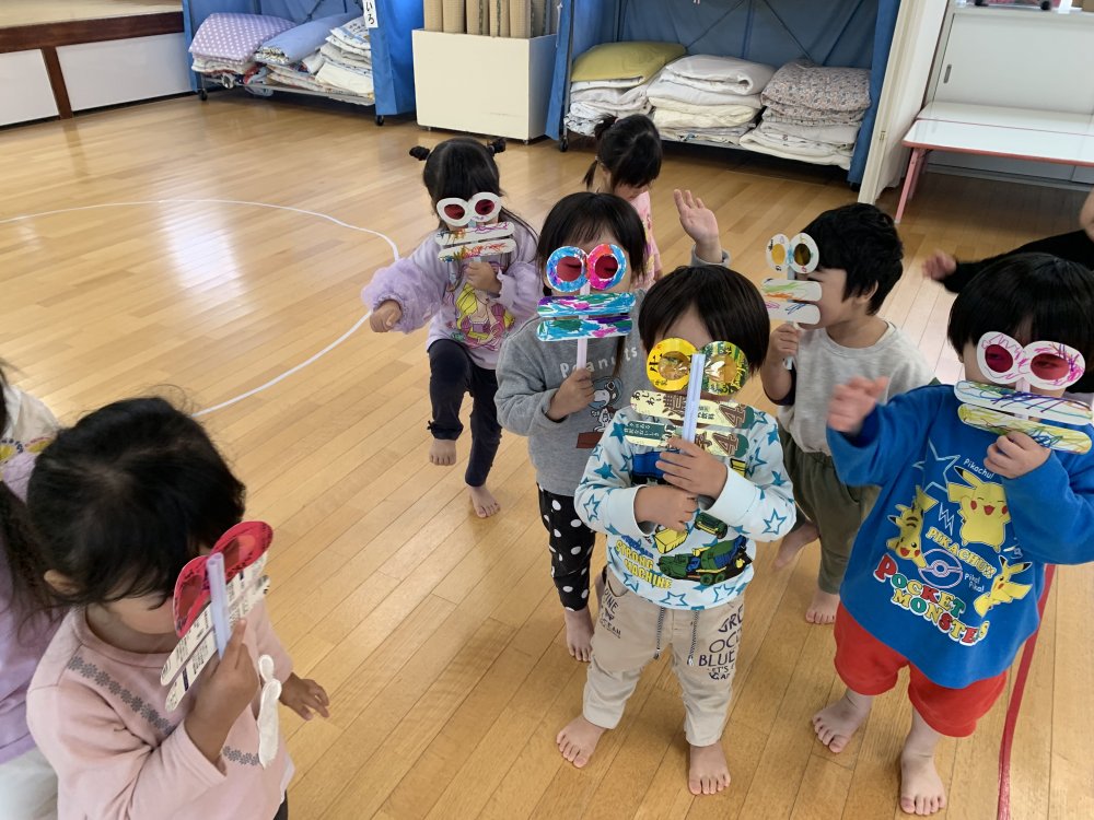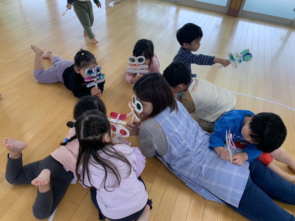 手作りしていたとんぼのめがねを出して