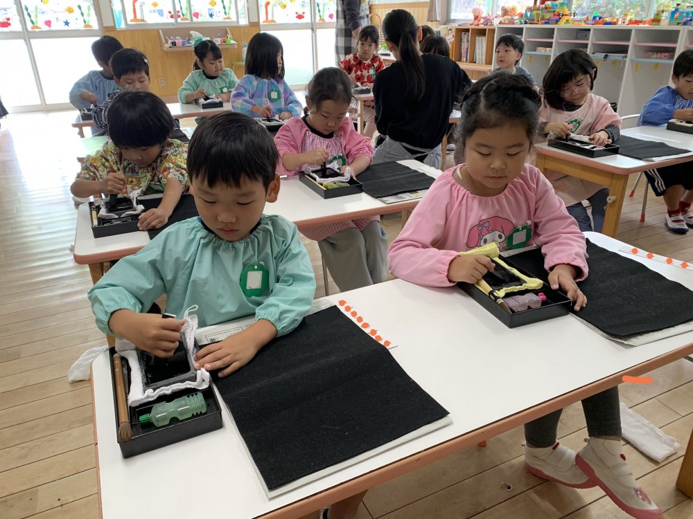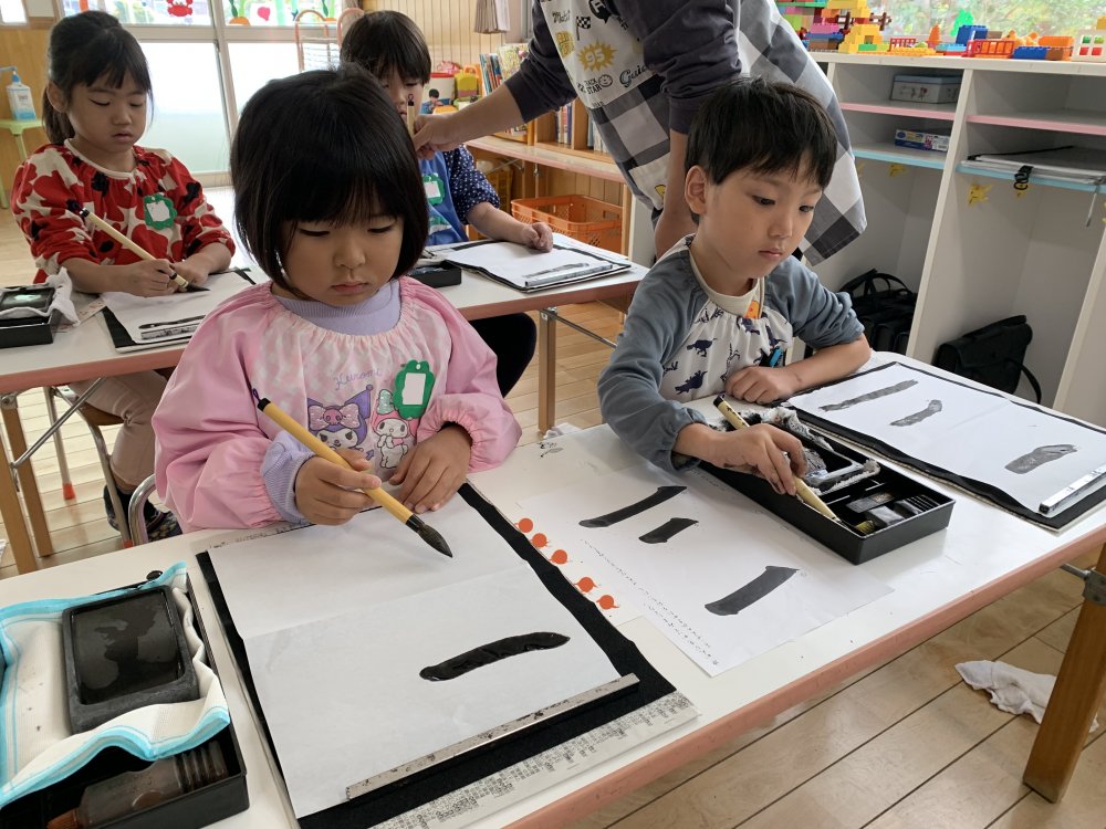 初めて筆や墨に触れる子もたくさんいます。
