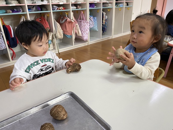 みかん2組 11月号 ~秋の食材にさわってみたよ!~